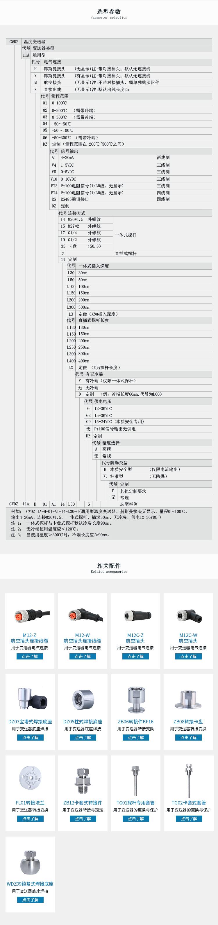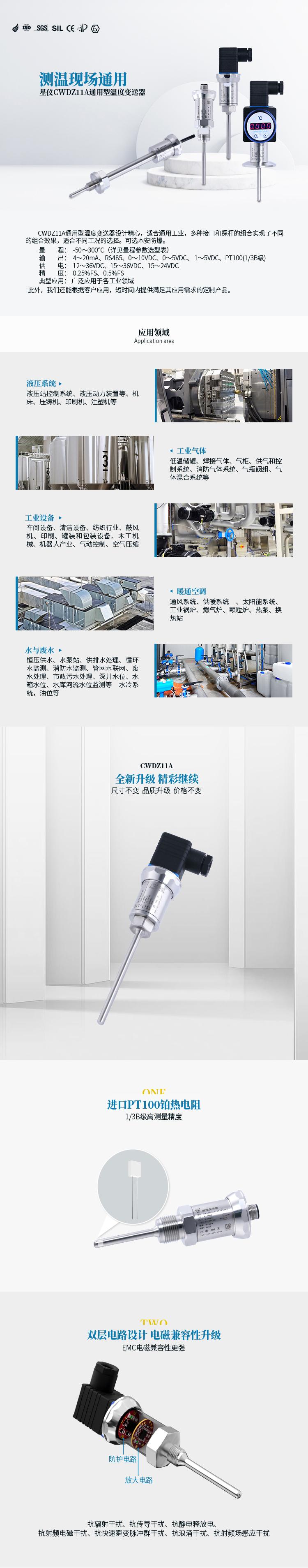CWDZ11A通用型溫度變送器設計精心,適合通用工業,多種接口和探桿的組合實現了不同的組合效果,適合不同工況的選